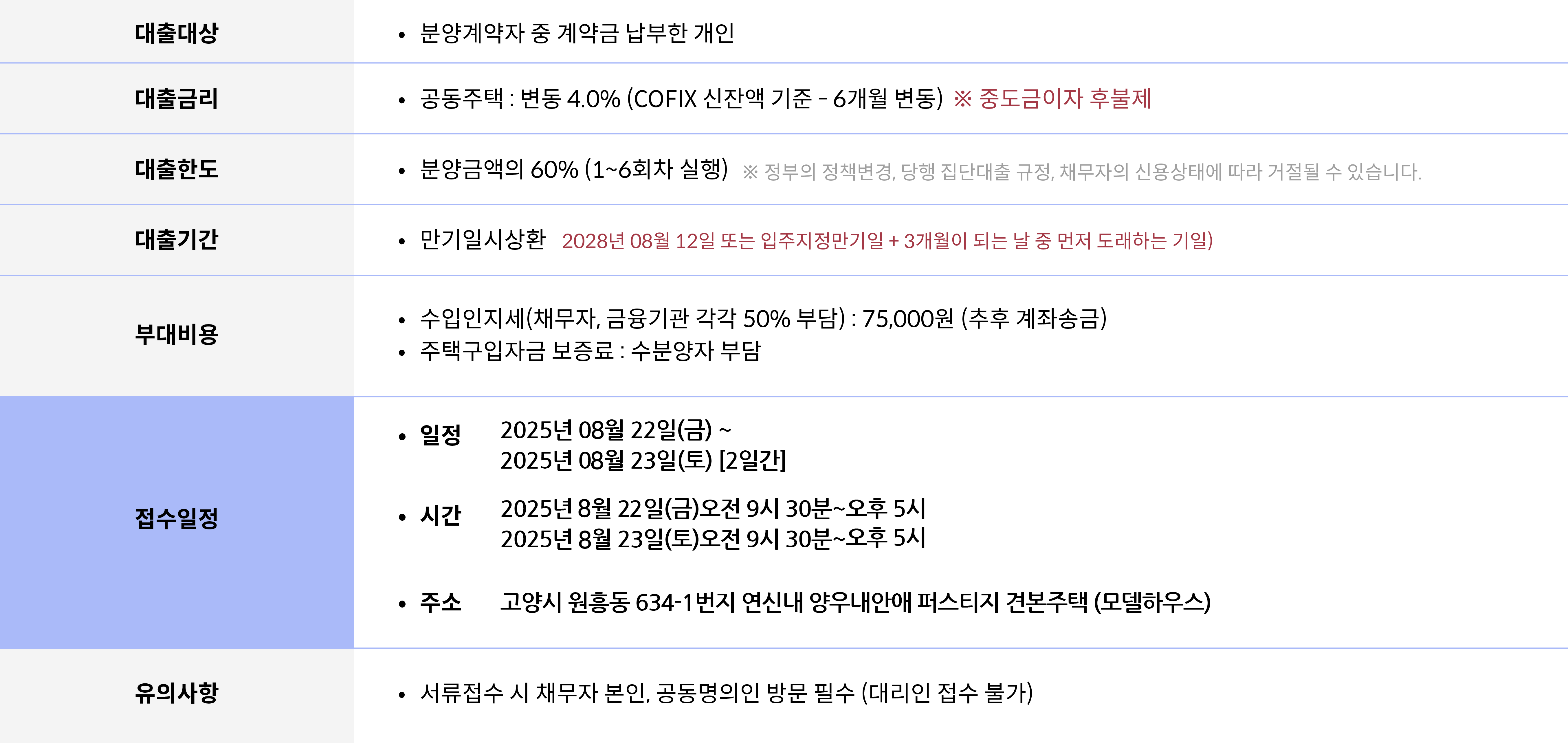연신내 양우내안애 퍼스티지 공동주택 중도금대출 안내